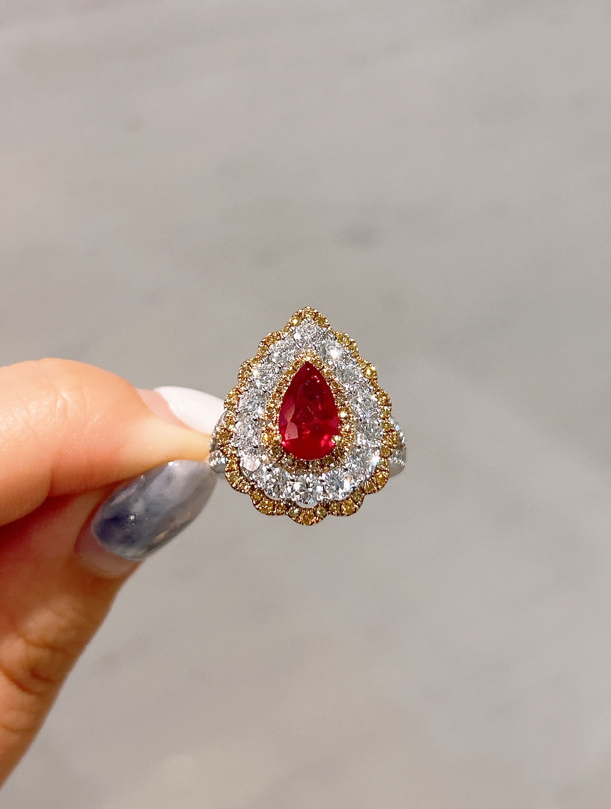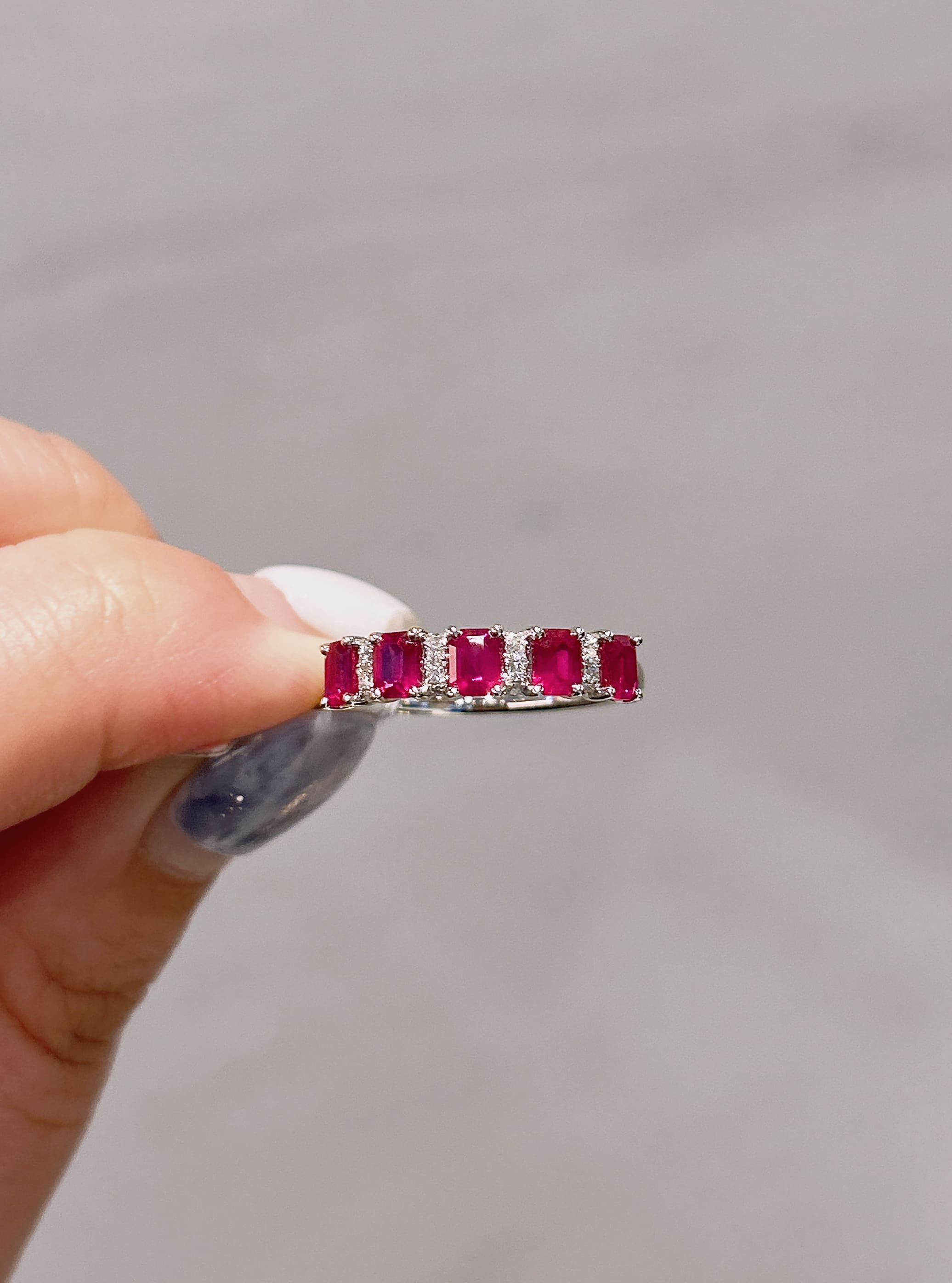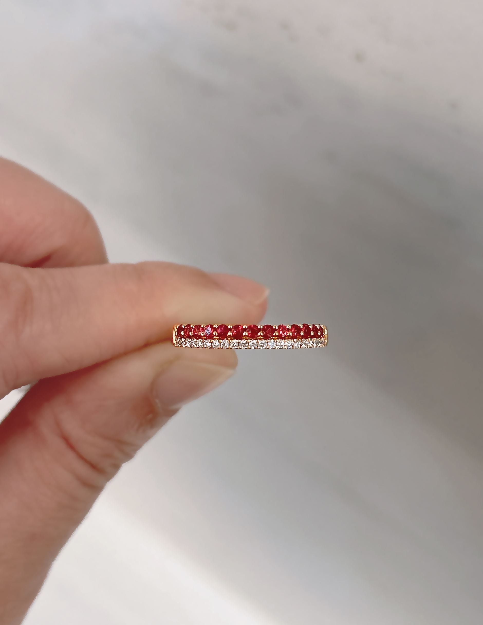 107495 天然紅寶戒指 主石共1.36克拉 有燒 紅寶排戒 圓鑽 簡約設計款 穿搭好物 宴會首飾配件 時尚 母親女朋友 禮物推薦