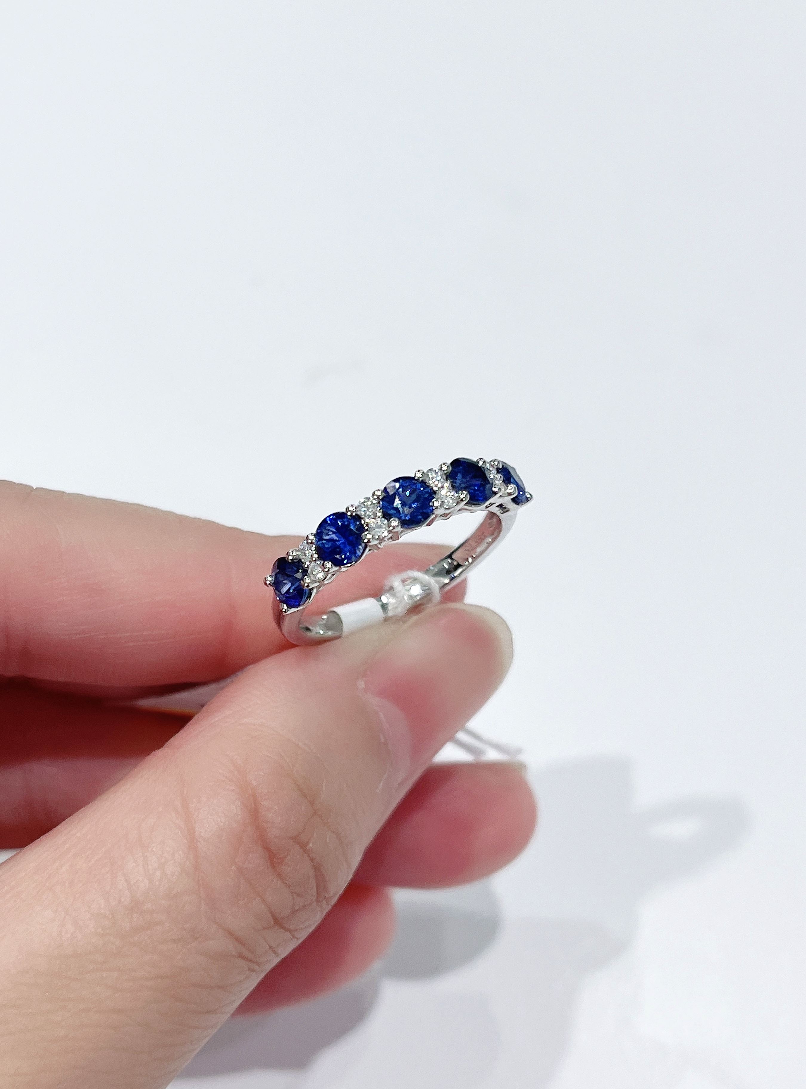 107498 天然藍寶戒指 主石共1.39克拉 有燒 藍寶排戒 圓鑽 簡約設計款 穿搭小物 顯白首飾配件 時尚 母親女朋友 送禮推薦
