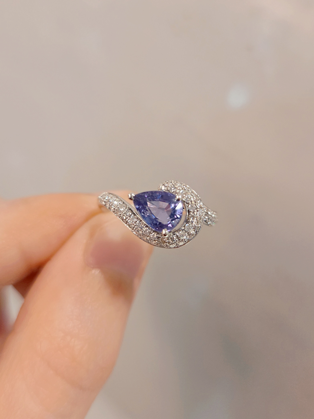 108827 天然紫色剛玉戒指1.26克拉 薰衣草色系 優雅水滴型 閃鑽縈繞設計 柔和靈動 仙氣優雅 氣質推薦款