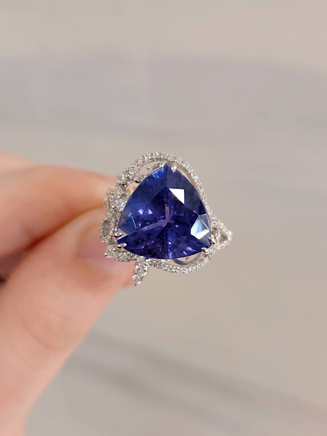 108931 天然丹泉石戒指7.53克拉 有燒 大克拉 坦桑石 靛青紫羅蘭 鏤空藤蔓環鑲設計 靜奢華美 海洋之心 鐵達尼式浪漫