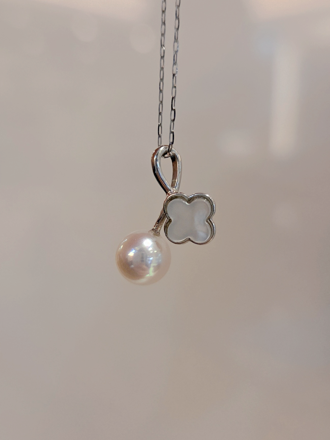 109137 天然海水珍珠項鍊 6.7mm 極光玫瑰 Premium 日本真科研證書 粉紅伴色 幸運草櫻桃設計 日系輕珠寶 小清新 特價品