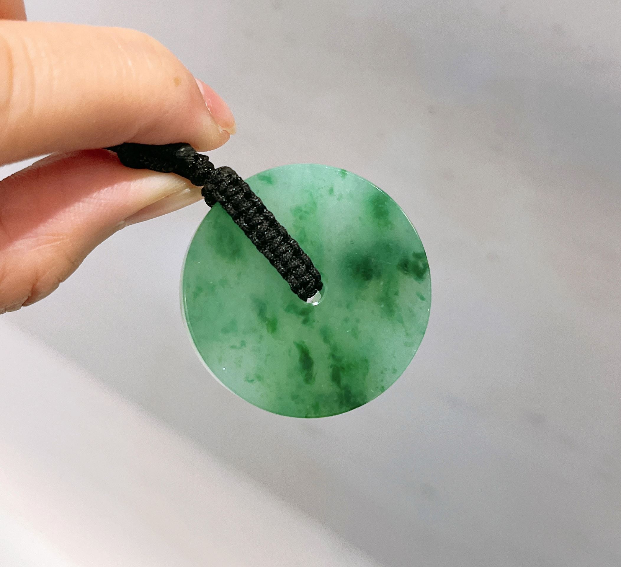 保留勿下標108056 天然翡翠墜子項鍊 緬甸玉 玉圈 滿綠 飄花 長輩送禮 懷古 吉祥圓滿 典雅 母親節 禮物推薦 超值