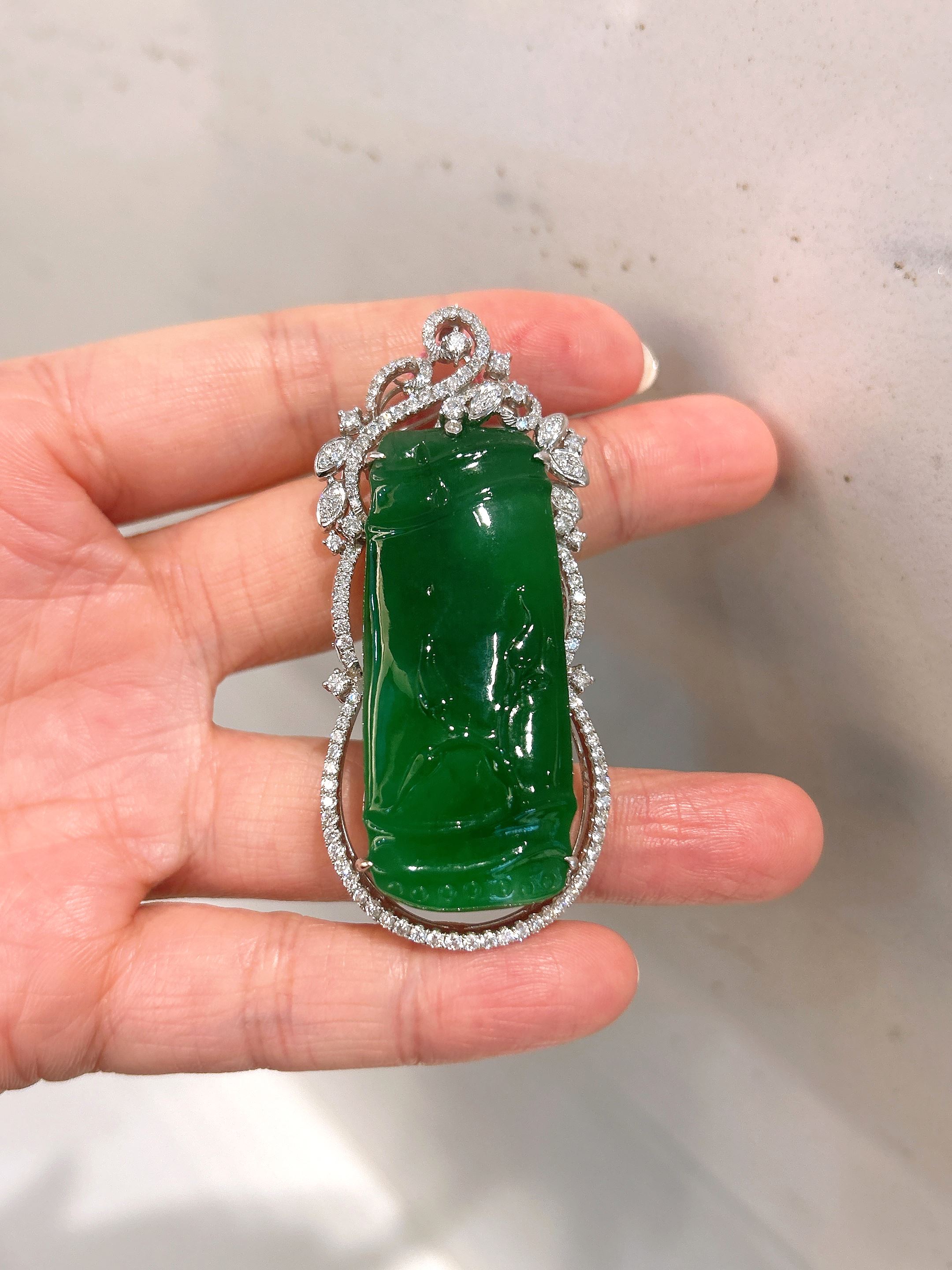 107861 天然翡翠墜子項鍊 緬甸玉 滿綠 種地佳 頂級 漂亮 竹 節節高升 長輩送禮 母親節 禮物 收藏