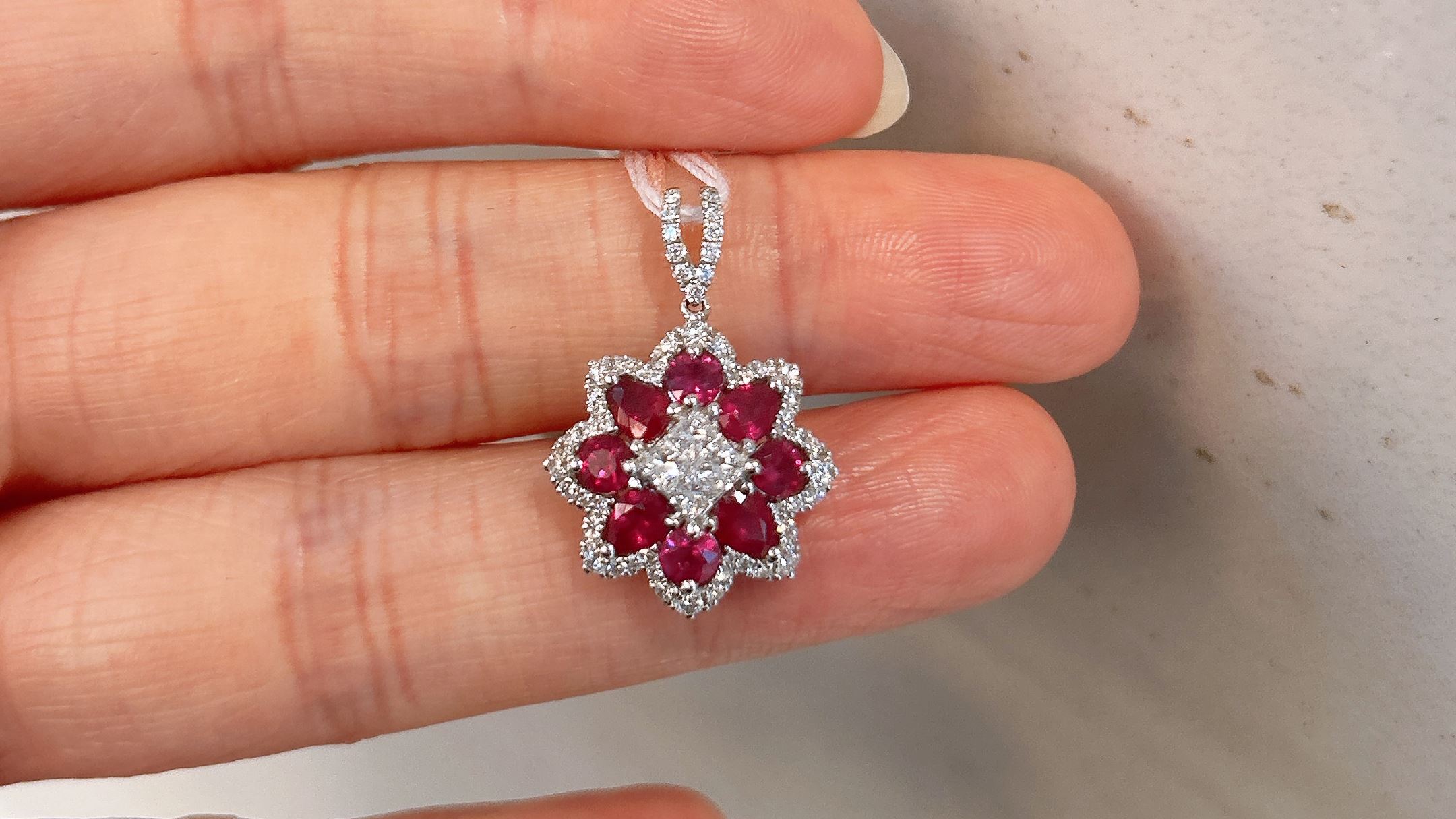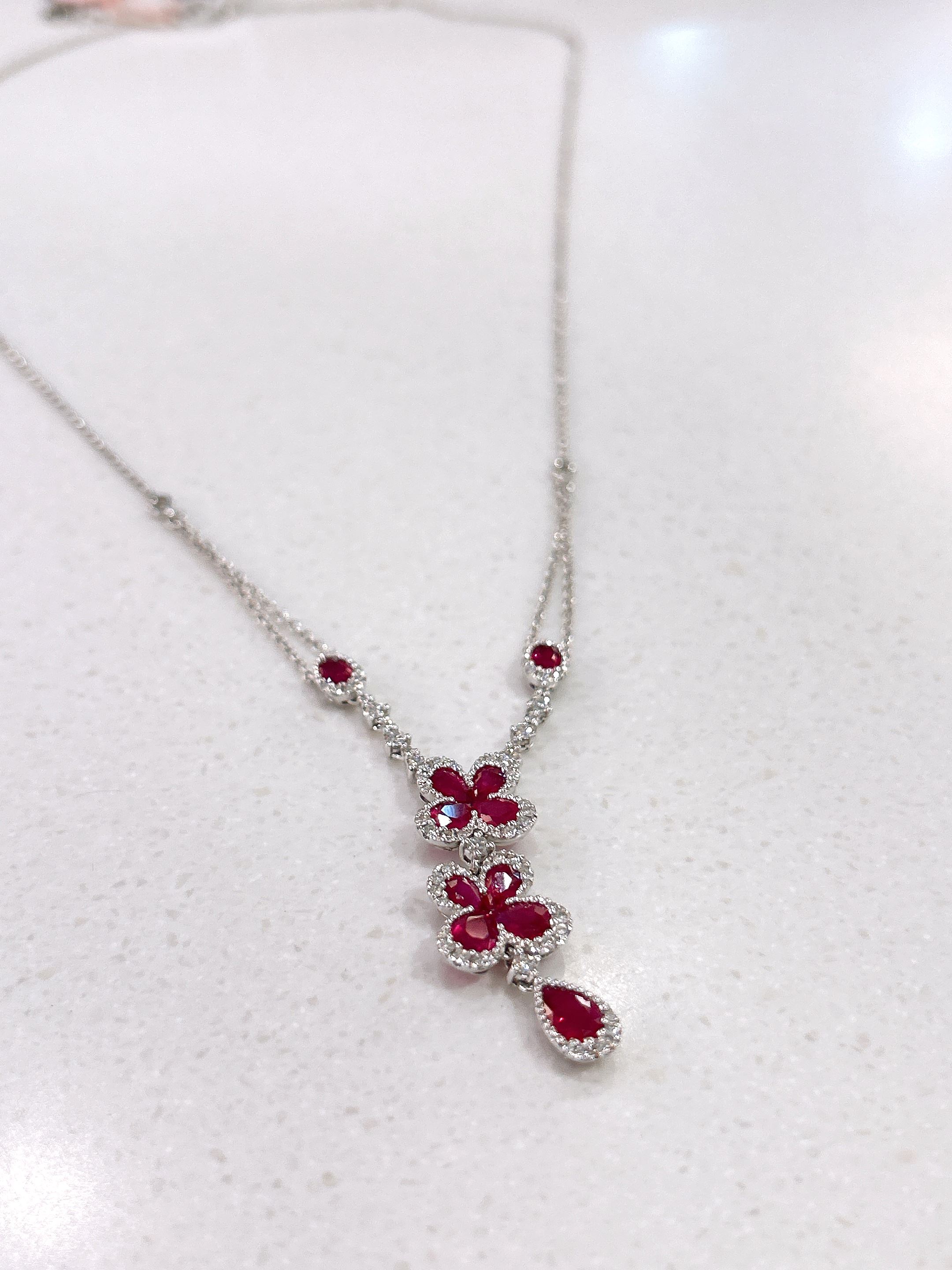 107900 天然旦型紅寶墜子 花朵設計 韓版 紅色幸運色 輕珠寶 典雅配件首飾 女朋友 送禮禮物