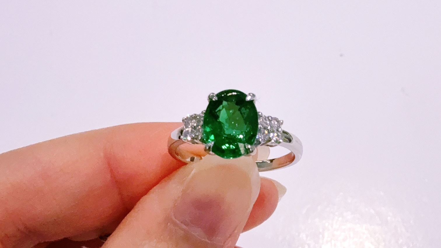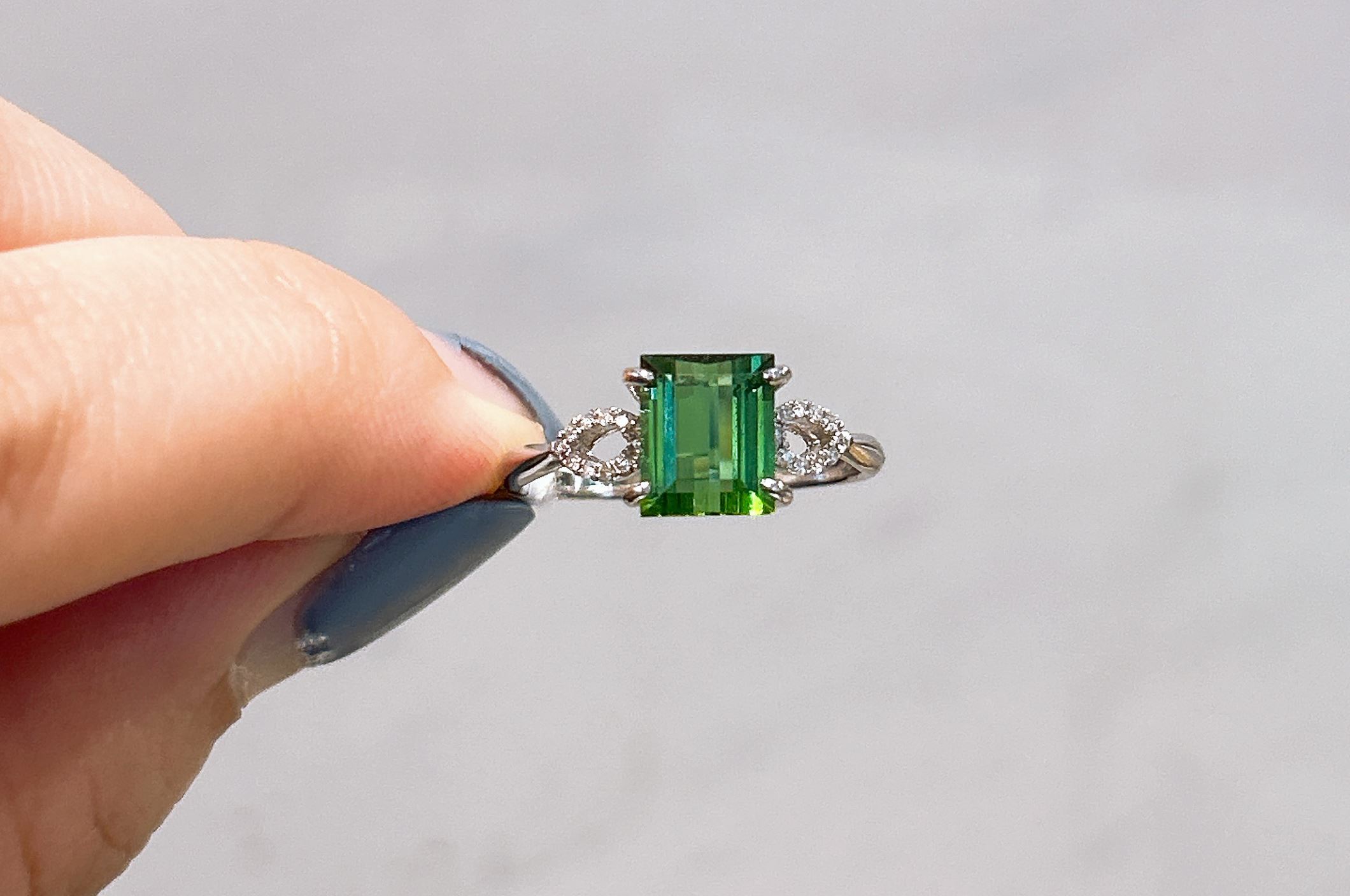 106077 台中店 天然碧璽戒指 主石2.20克拉 簡約造型 精緻優雅 白鑽 日常款 綠色控 個性首飾 收藏 特價