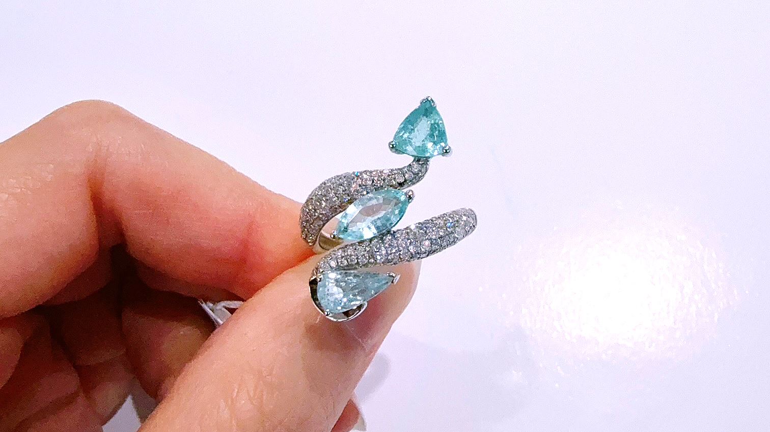 107248 天然碧璽戒指 主石共2.22克拉 綠藍色 白K金 時尚造型設計 宴會配件首飾 圓鑽 女朋友母親節 週年紀念日 送禮禮物