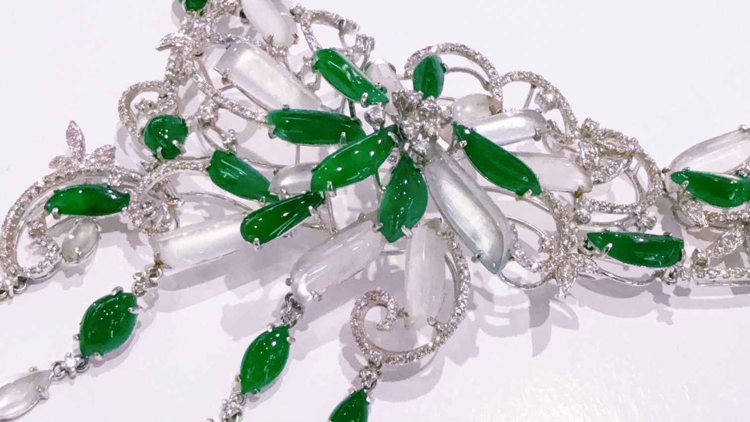 107294 天然翡翠套鍊 冰白綠翡 共42顆 豪華造型 宴會配件 典雅首飾 母親節紀念日 推薦