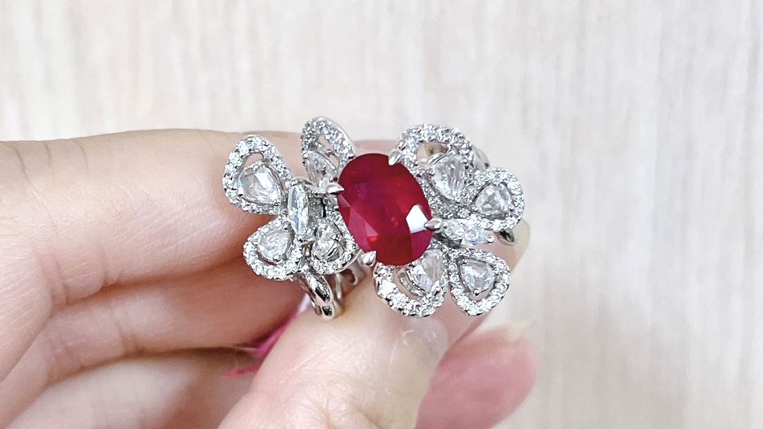 104915 天然紅寶石戒指 緬甸 蝴蝶造型設計 華麗優雅 情人節 禮物 心動紅色