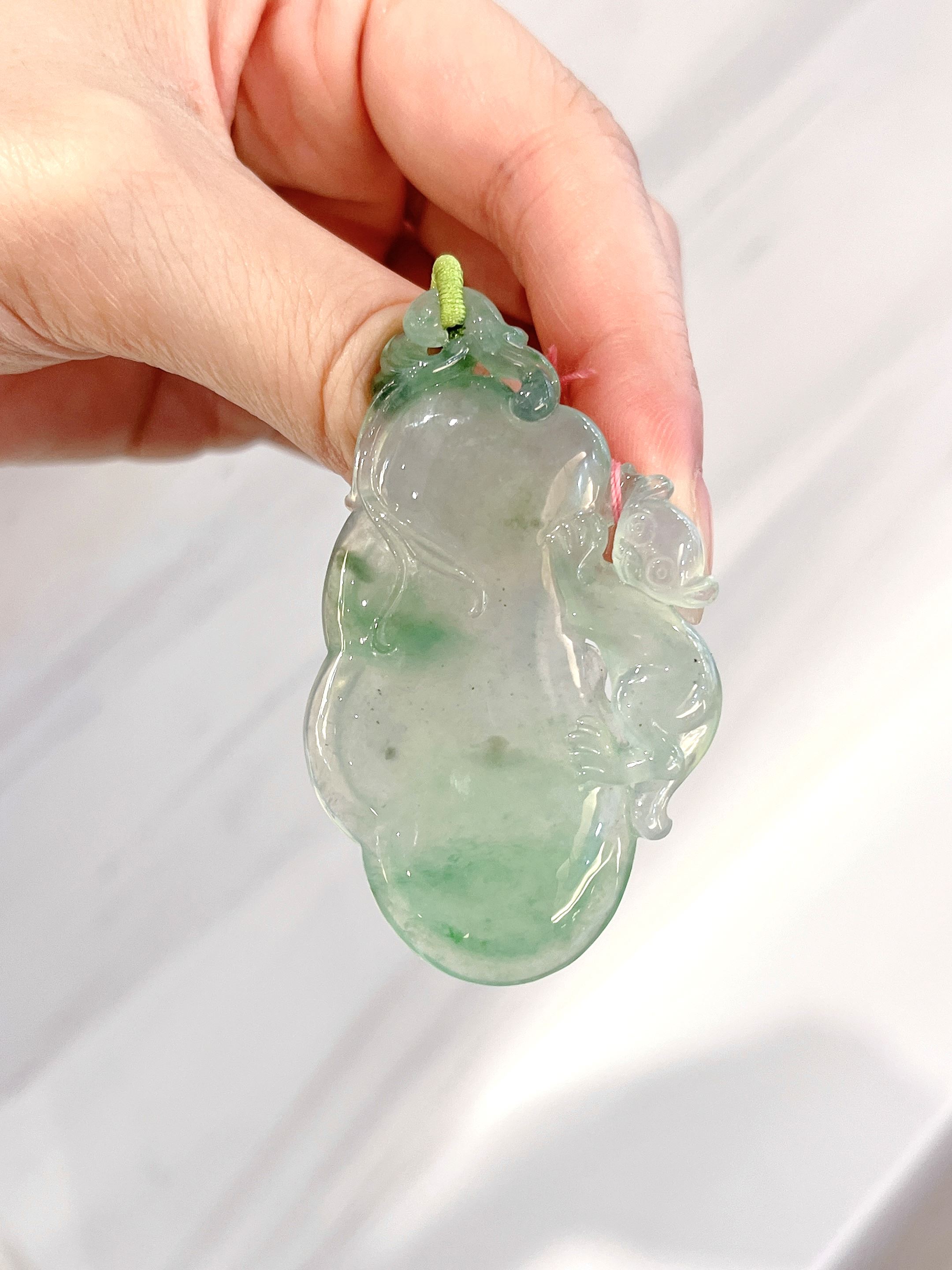 107873 天然翡翠墜子 緬甸玉 翡翠 綠玉 猴子 祥獸 桃子長壽 長輩 母親節 送禮禮物