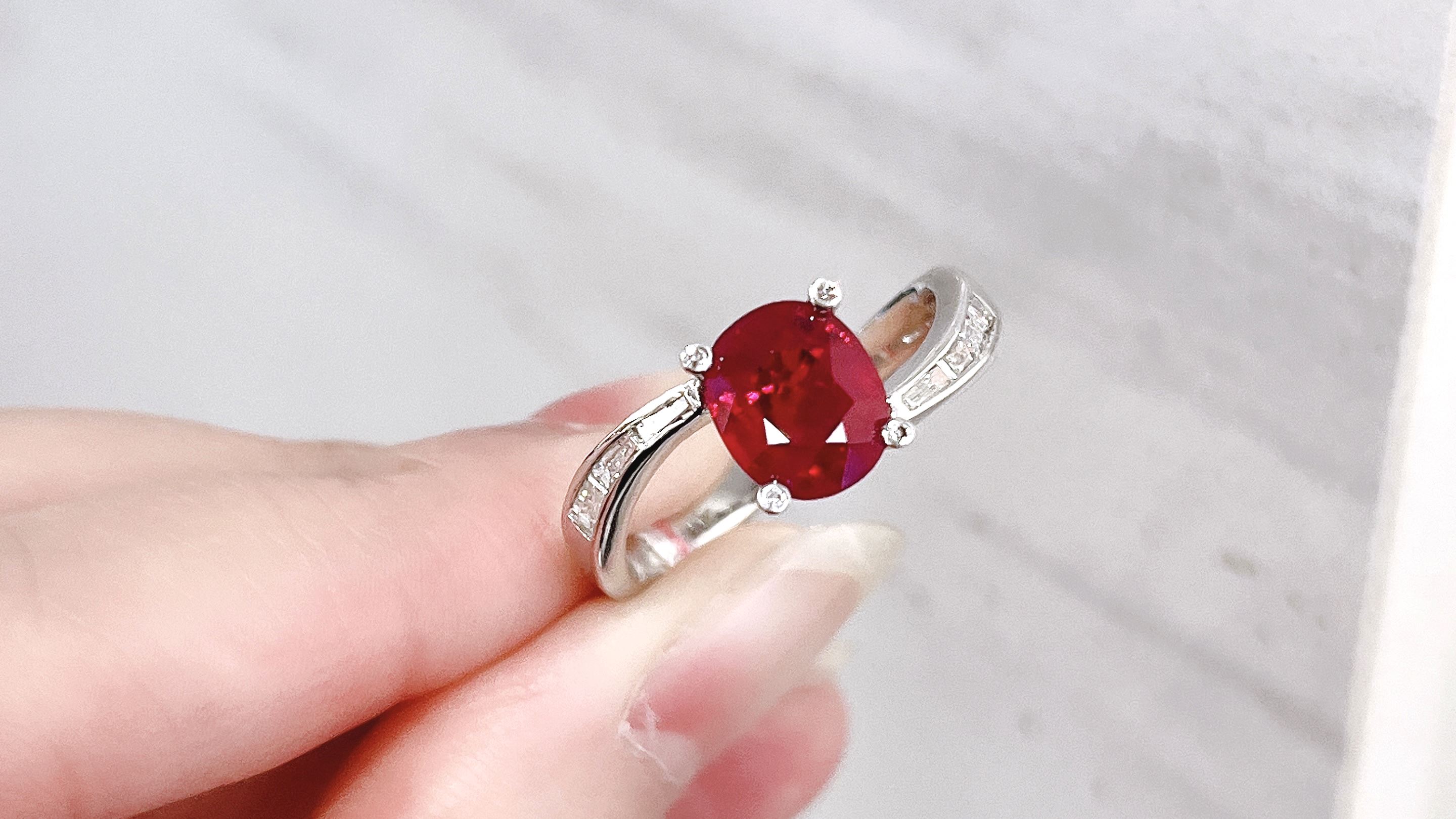 106619 天然紅寶石戒指 緬甸 白K金 簡約設計 日常穿搭 女朋友 禮物 心動紅色