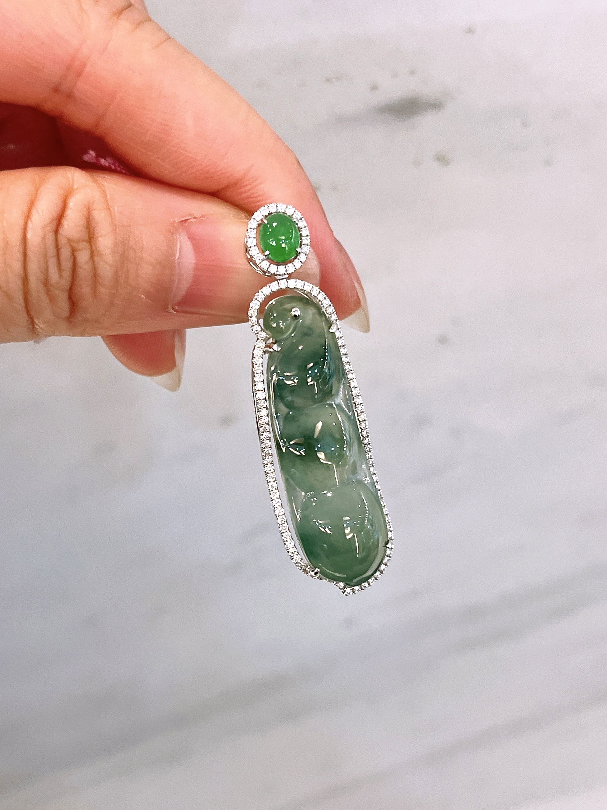 107009 天然翡翠墜子 多子多孫 綠玉 豆莢 長輩 母親節 福氣 送禮 禮物