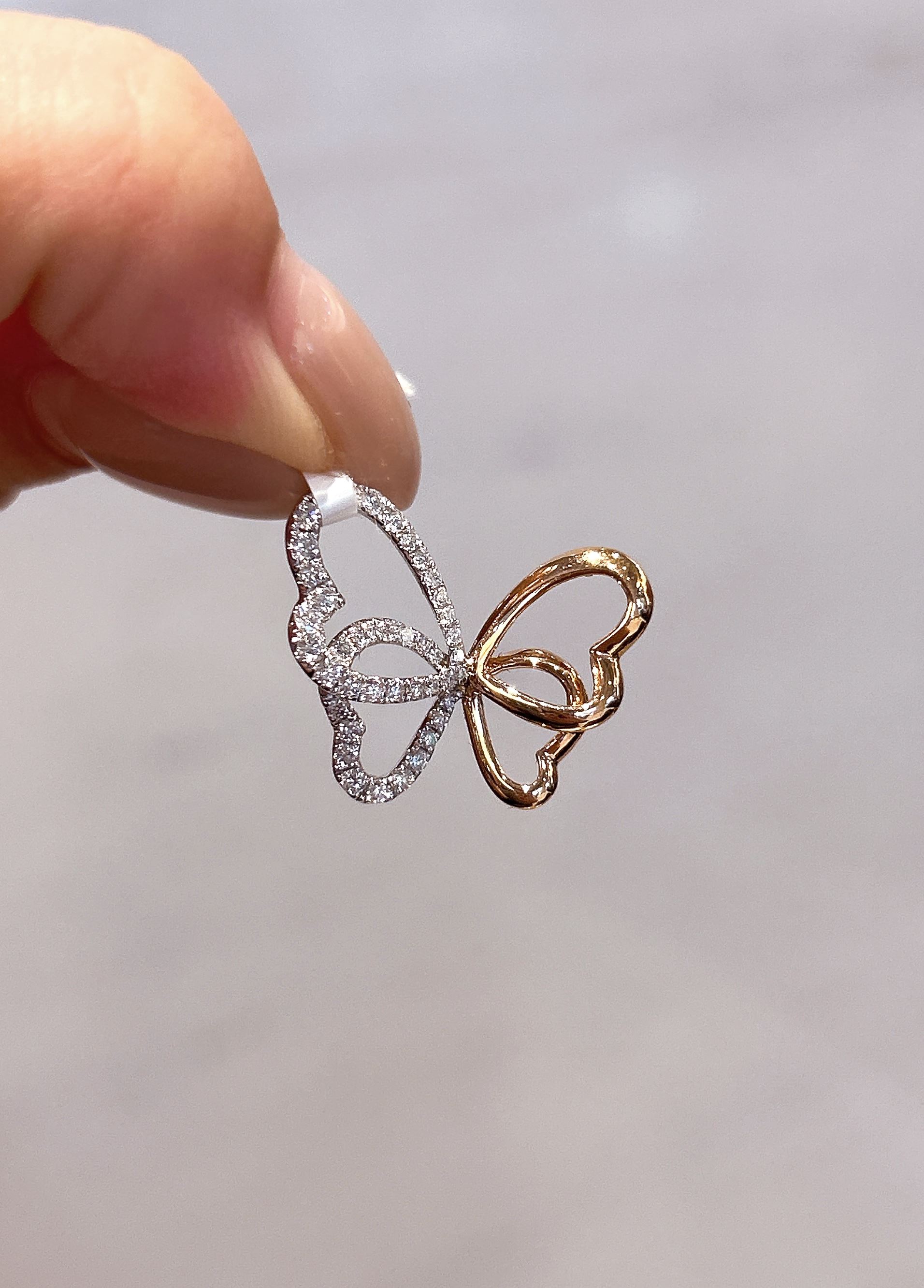 105614 天然鑽石墜子 蝴蝶造型 雙色K金 美鑽 輕珠寶 日常百搭配件 小巧精緻 女朋友 閨蜜 生日 紀念日禮物