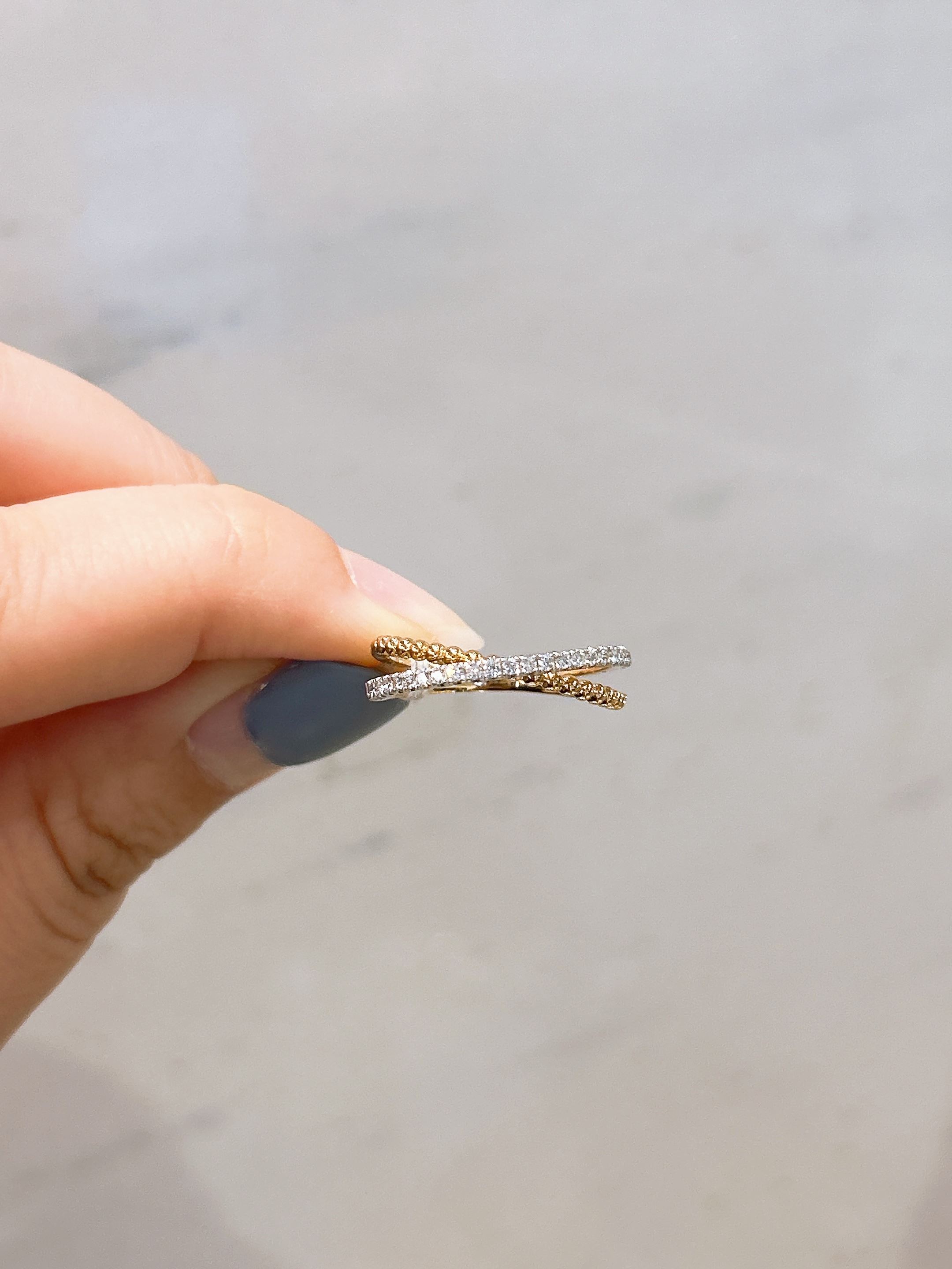 104577 天然真鑽戒指 交錯造型設計 日常百搭 黃K金 輕珠寶 優雅鑽戒 簡約日常配件 女朋友 閨蜜 送禮禮物 超值好物