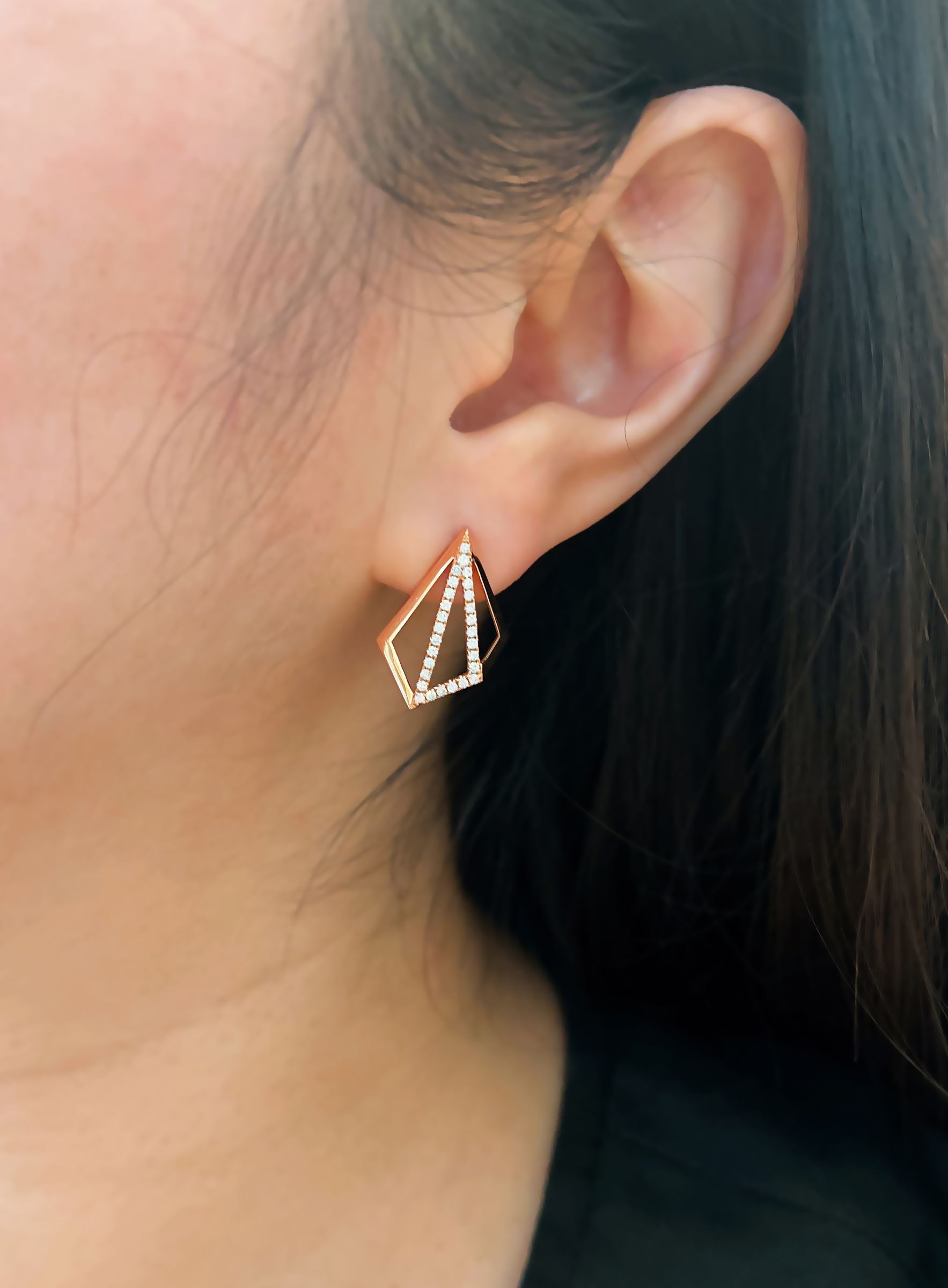 107244 天然鑽石耳環 三角形造型 圓鑽 玫瑰金 簡約典雅 塔形 百搭配件 時尚幾何款 情人節 女朋友 送禮禮物 紀念日 超值