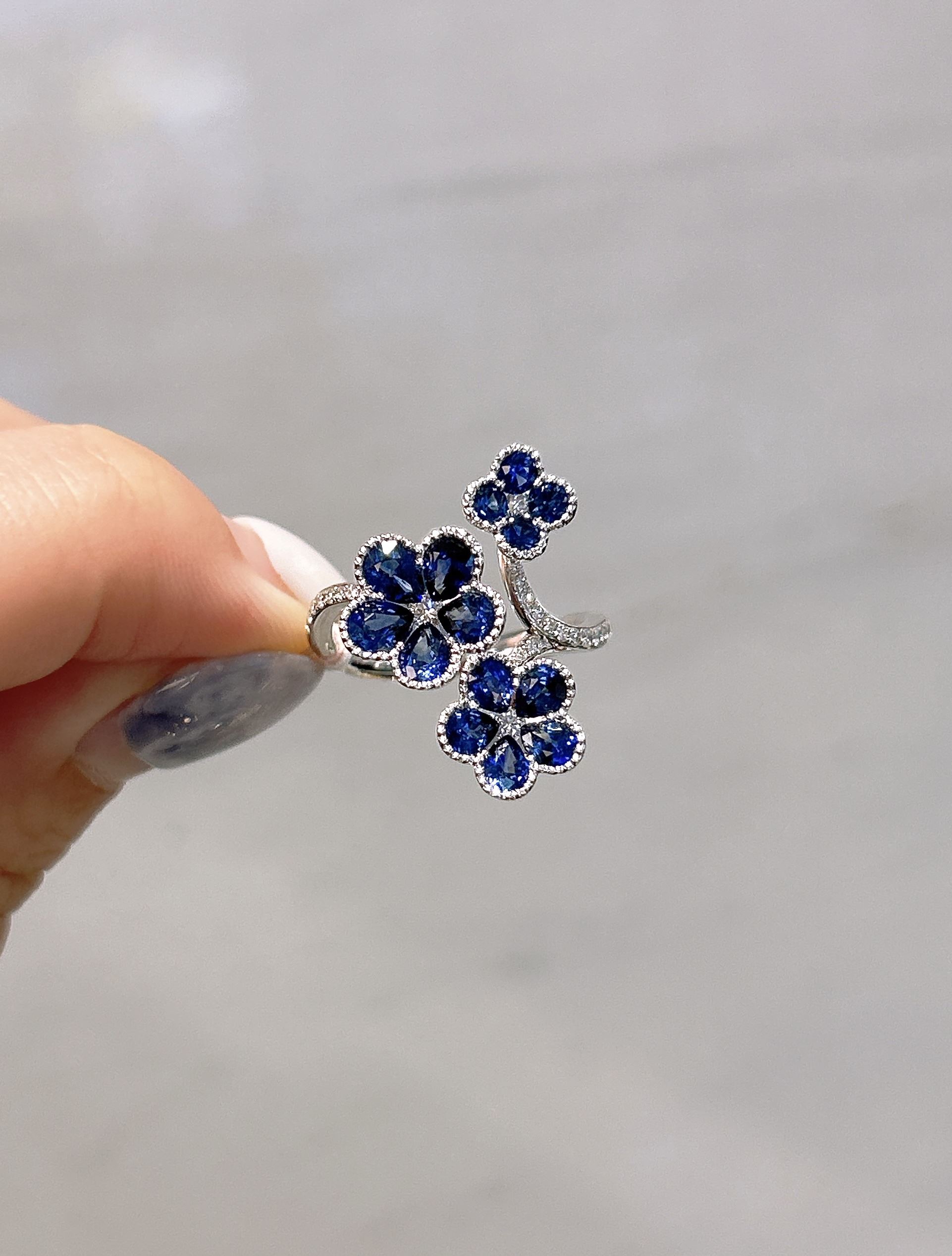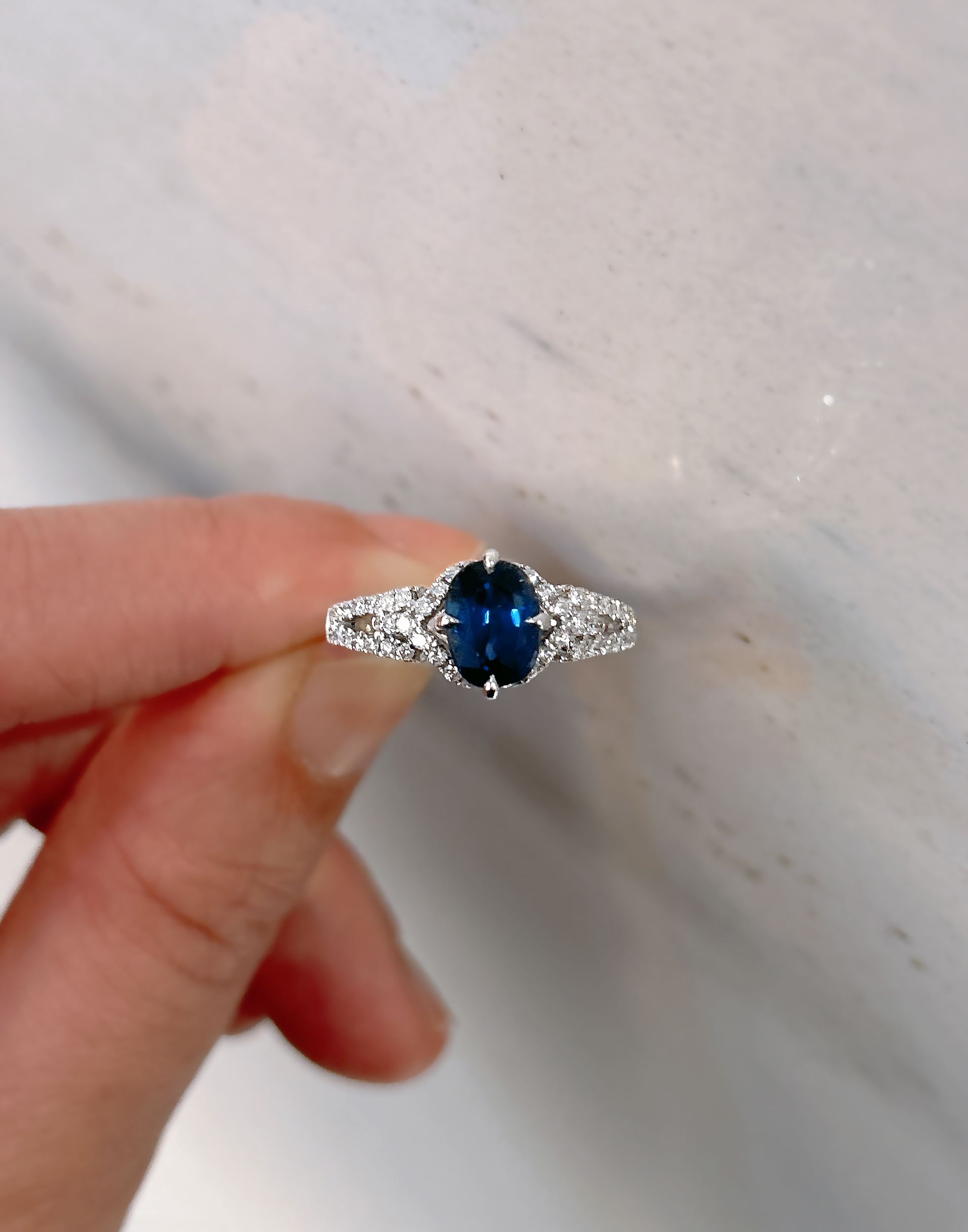 107594 天然旦型藍寶戒指 GRS國際證書 簡約優雅 幾何對稱款 多場合 日常配件 白鑽 送禮自用 紀念日 情人節禮物 超值推薦