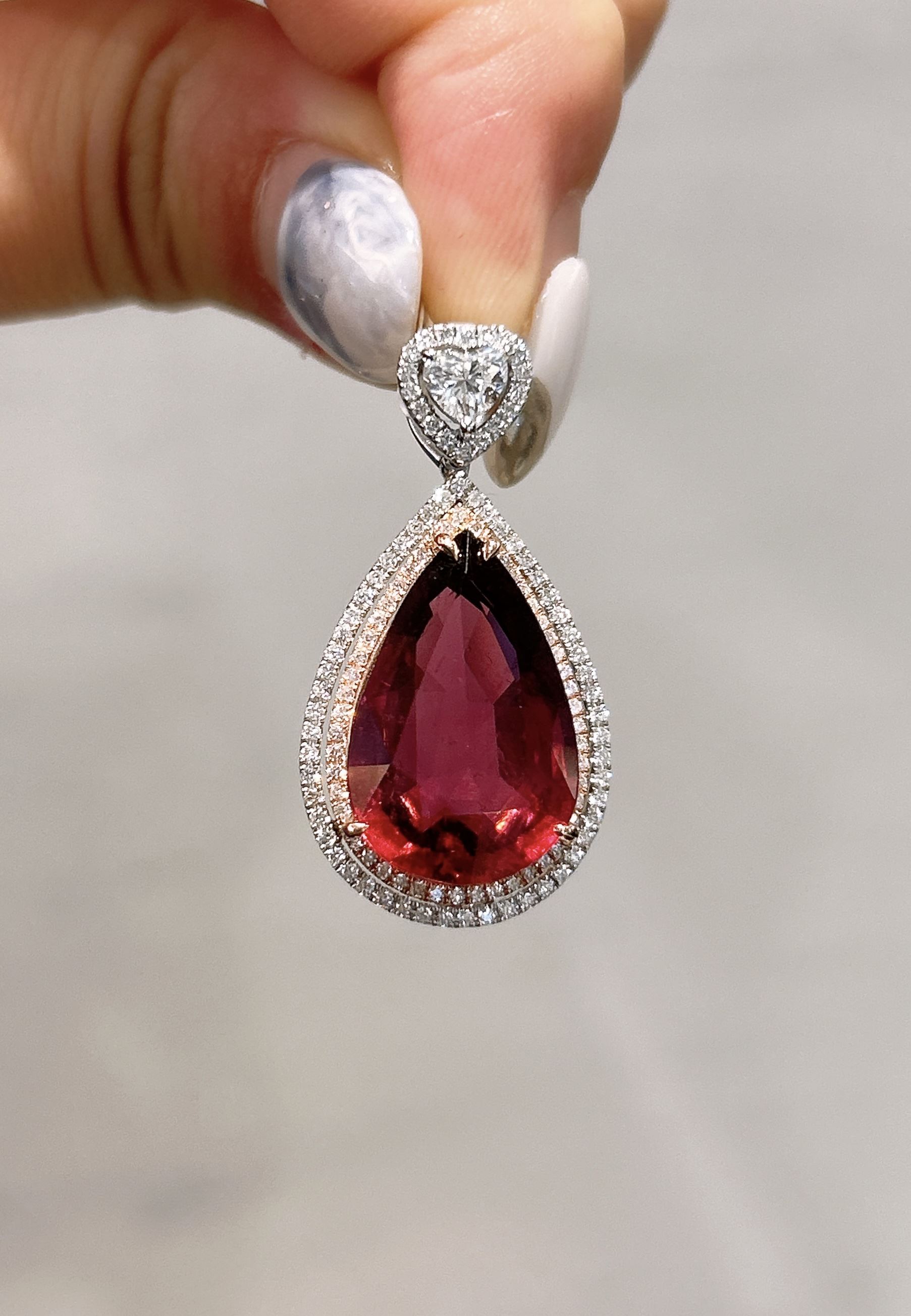 保留勿下標107761 天然碧璽墜子 主石10.50克拉 大方美品 華麗鑽圈 白鑽 愛心鑽 個性首飾 宴會款 收藏推薦