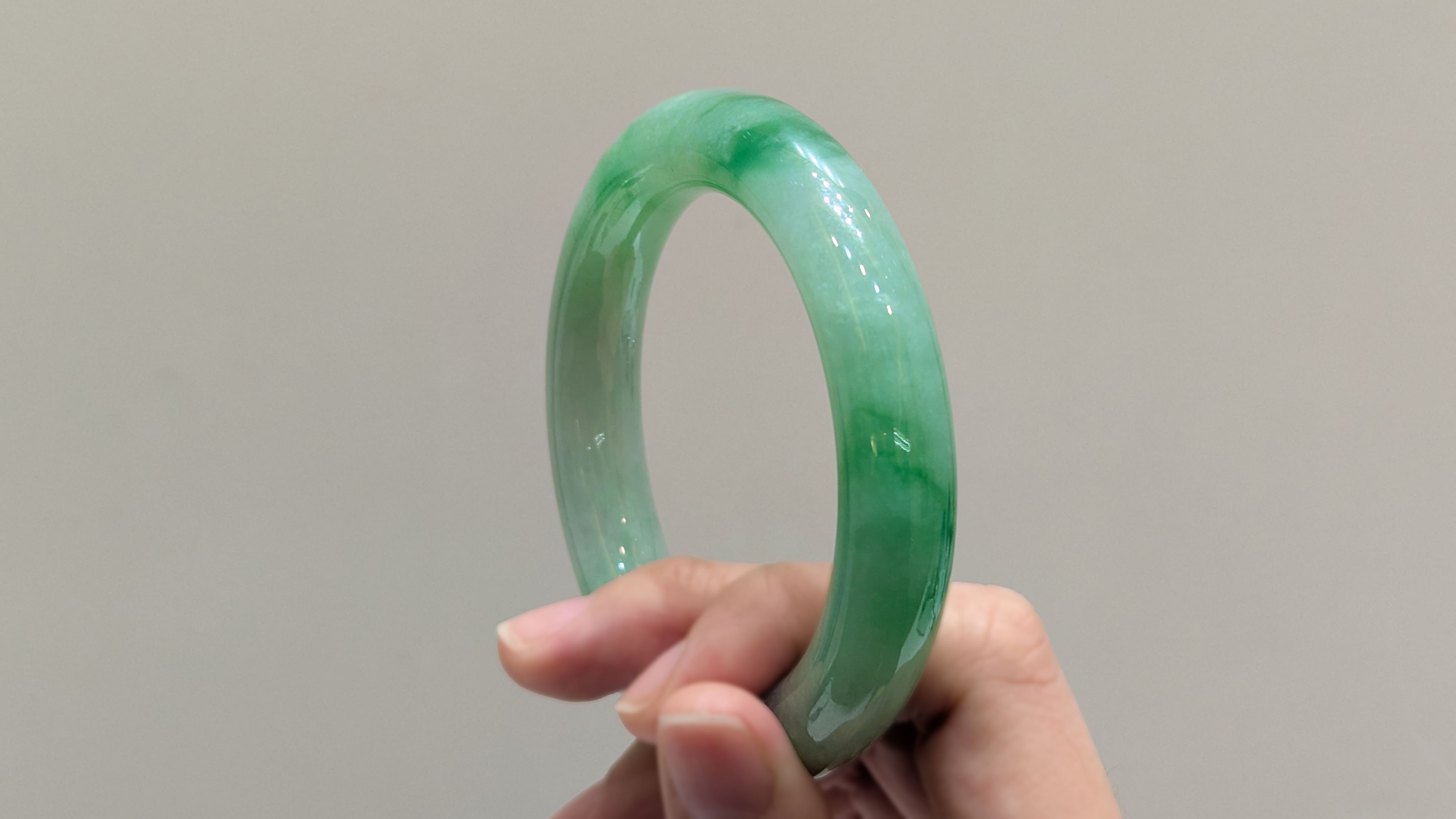 106808 台中店 天然翡翠手鐲 玉鐲玉圈 17.3圍 濃綠 圓骨鐲 母親節禮物 長輩送禮 週年紀念日