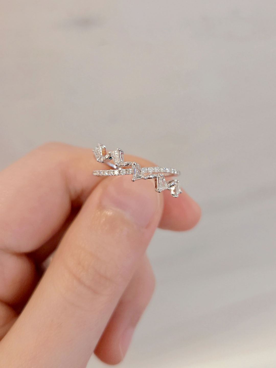 108851 天然鑽石戒指 時尚閃亮個性款 交錯戒指 交叉戒指 T鑽 圓鑽 白K金 鑽戒 輕珠寶 禮物 推薦