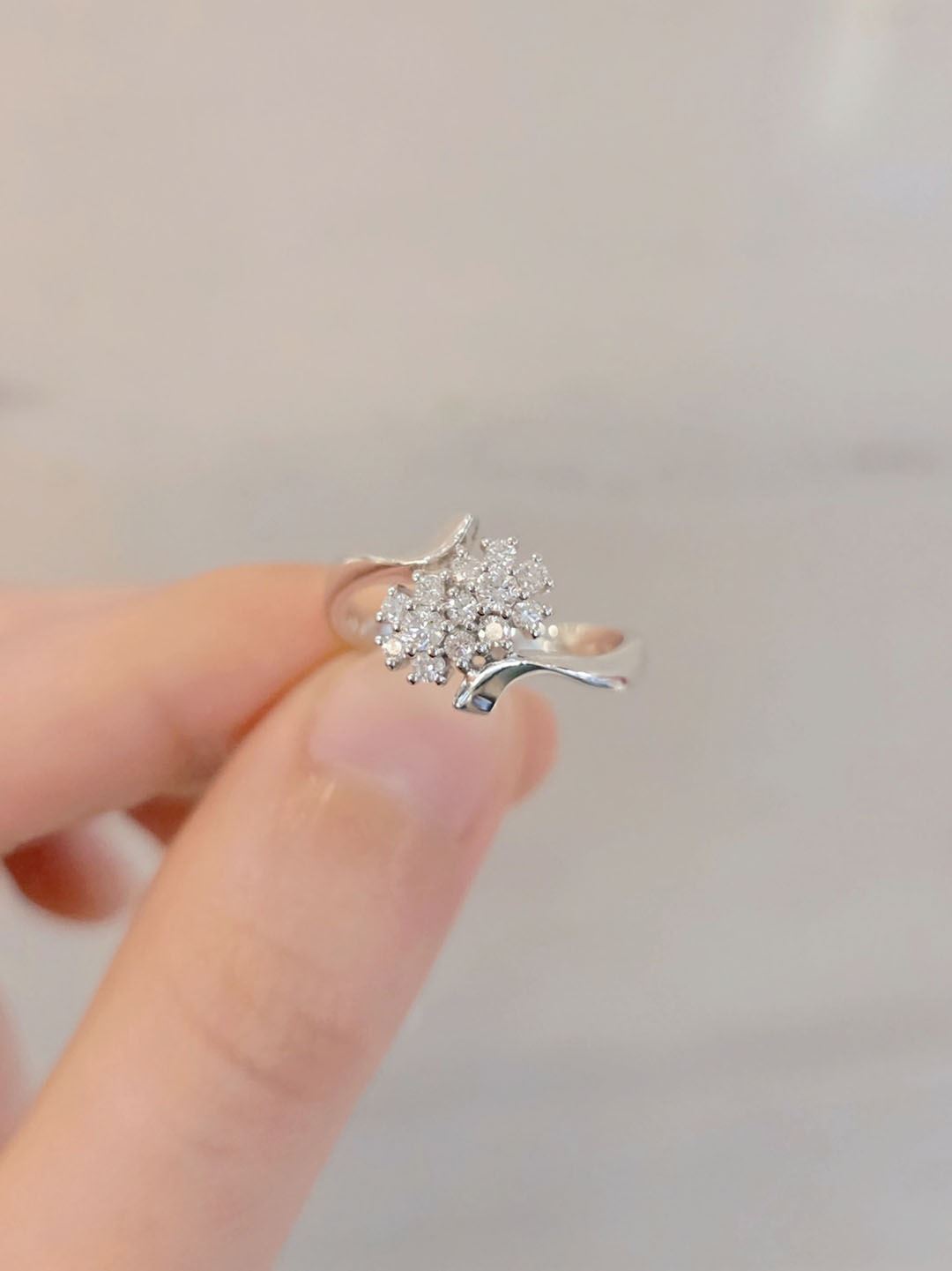 108858 天然鑽石戒指 璀璨花型戒指 曲線戒指 拼鑽設計 春日氣息 浪漫優雅 花型飾品 白K金 鑽戒 輕珠寶 禮物 推薦