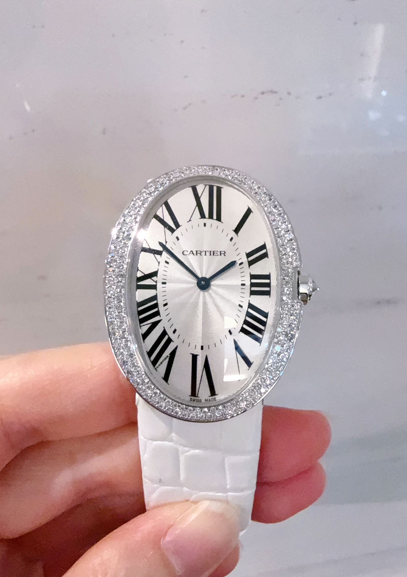 保留勿下標71884 卡地亞 Cartier Baignoire 原廠手錶 18K鑽錶 白K金 鵝蛋 浴缸 手上鍊 附證書 盒子 女用款 禮物 超值